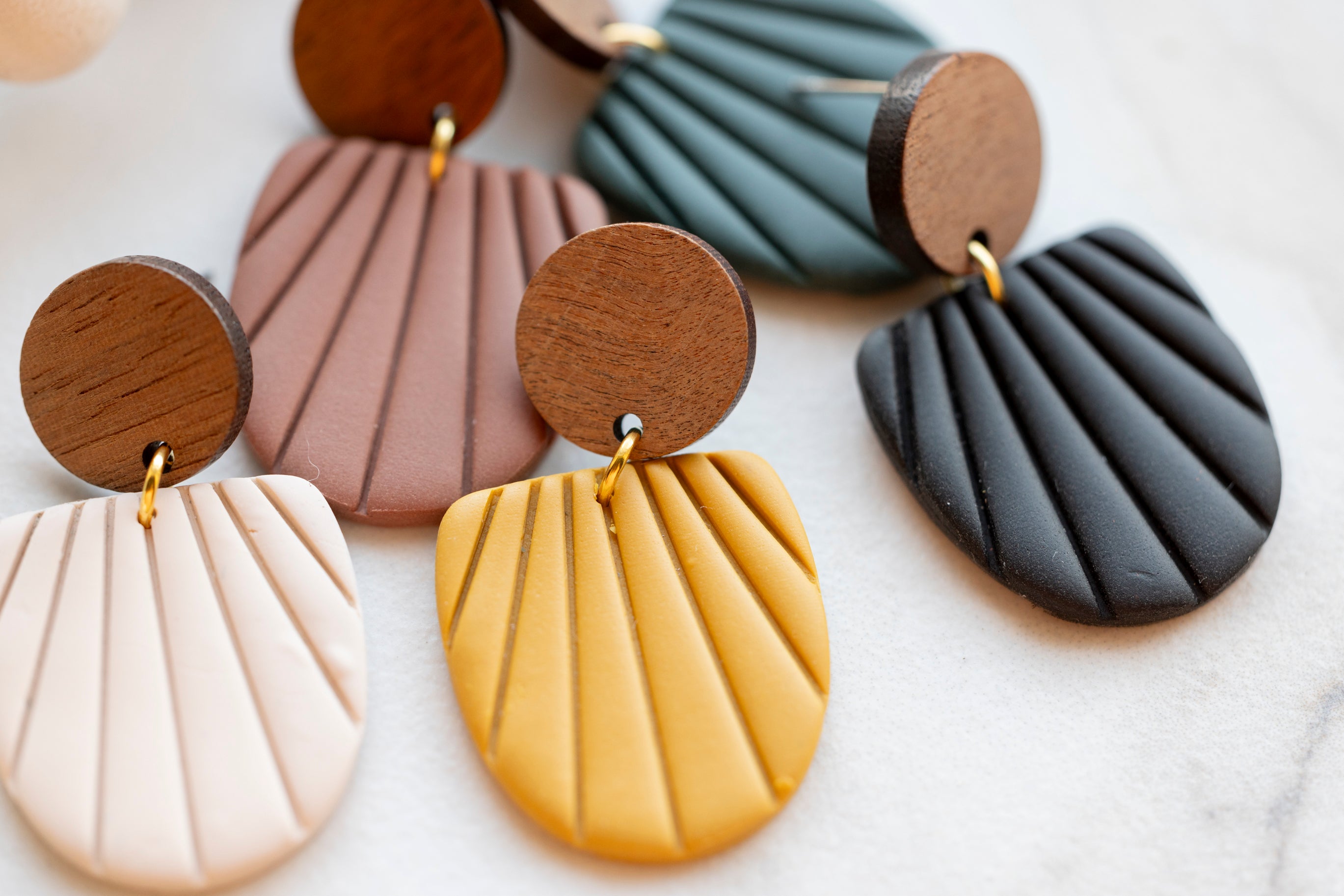 Our products use the best materials to ensure they're comfortable to wear day in and day out. They're Lightweight Polymer Clay, with gold & rhodium plated silver to ensure lightweight style, that won't tarnish.