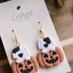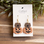 Bring a playful touch of Halloween charm to your style with our Pumpkin Pups Earrings! Each pair features an adorable pup perched on a smiling jack-o-lantern, handcrafted with care from lightweight polymer clay. These earrings are perfect for dog lovers who want to celebrate the season with a mix of festive fun and everyday cuteness. Hypoallergenic gold-plated hooks ensure comfortable wear all day long, whether you’re at a fall festival, trick-or-treating with the kids, or simply showing off your love of pups and pumpkins.