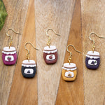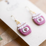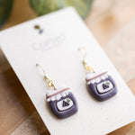 Bring a little country charm to your jewelry box with our Farmhouse Flavors collection — a sweet lineup of handcrafted polymer clay earrings inspired by your favorite pantry staples. Featuring five cozy "flavors" — apple butter, honey, grape jam, strawberry jam, and blueberry jam — each earring is sculpted with care to look like a mini mason jar, complete with a ruffled lid and a tiny fruit label.