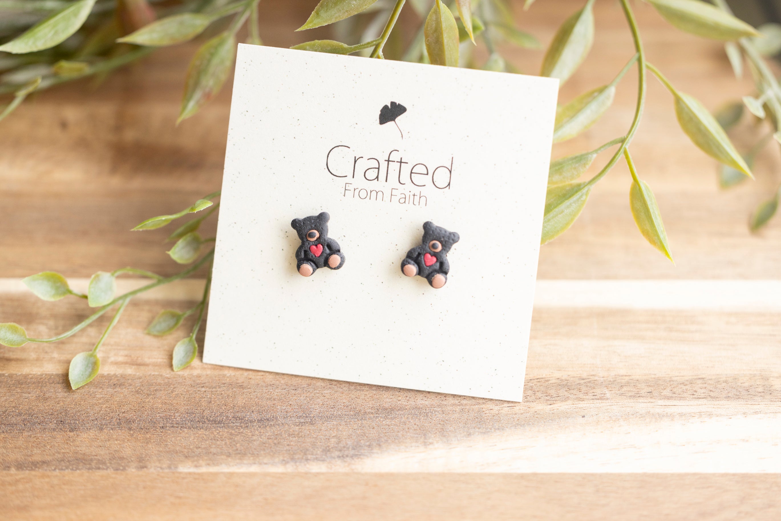Meet your new everyday Valentine favorite. Cuddle Bear Cutie Studs feature the sweetest little teddy bear holding a heart, perfect for adding a touch of love to any look. Lightweight, comfortable, and irresistibly cute, these studs are easy to wear and even easier to love.