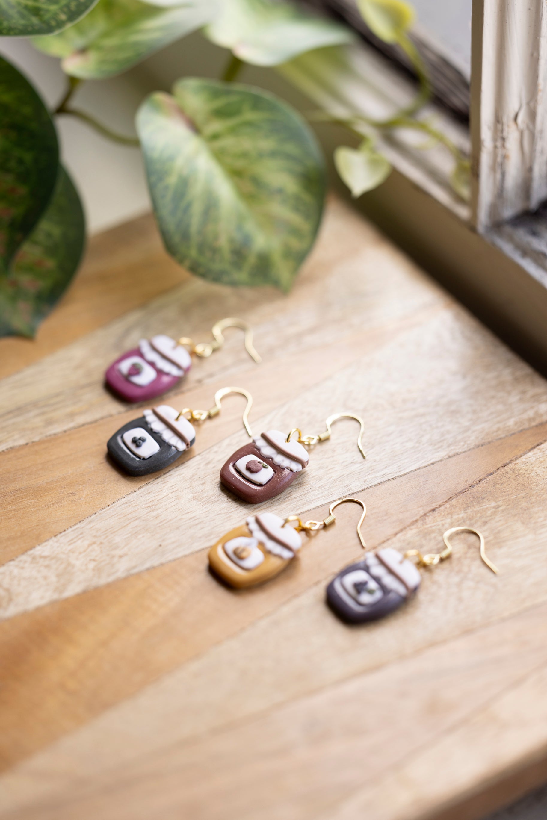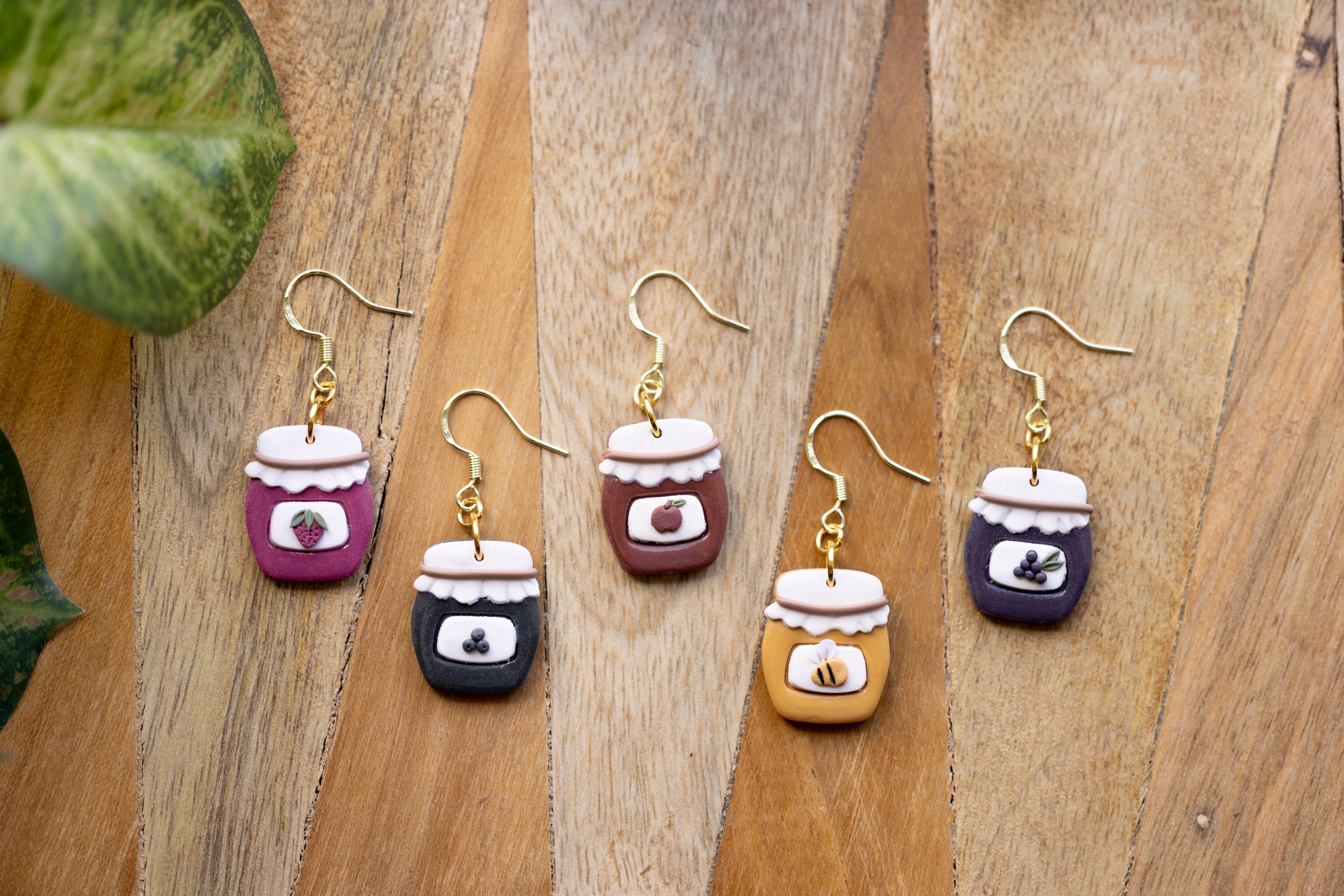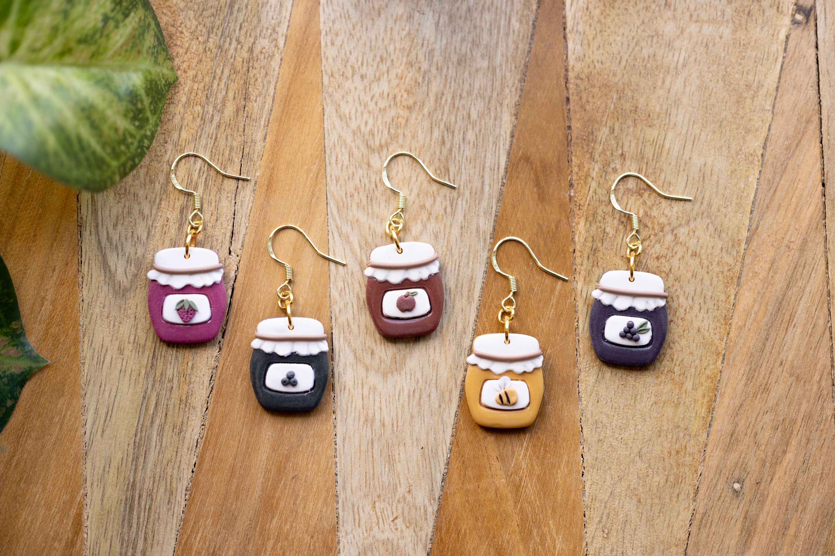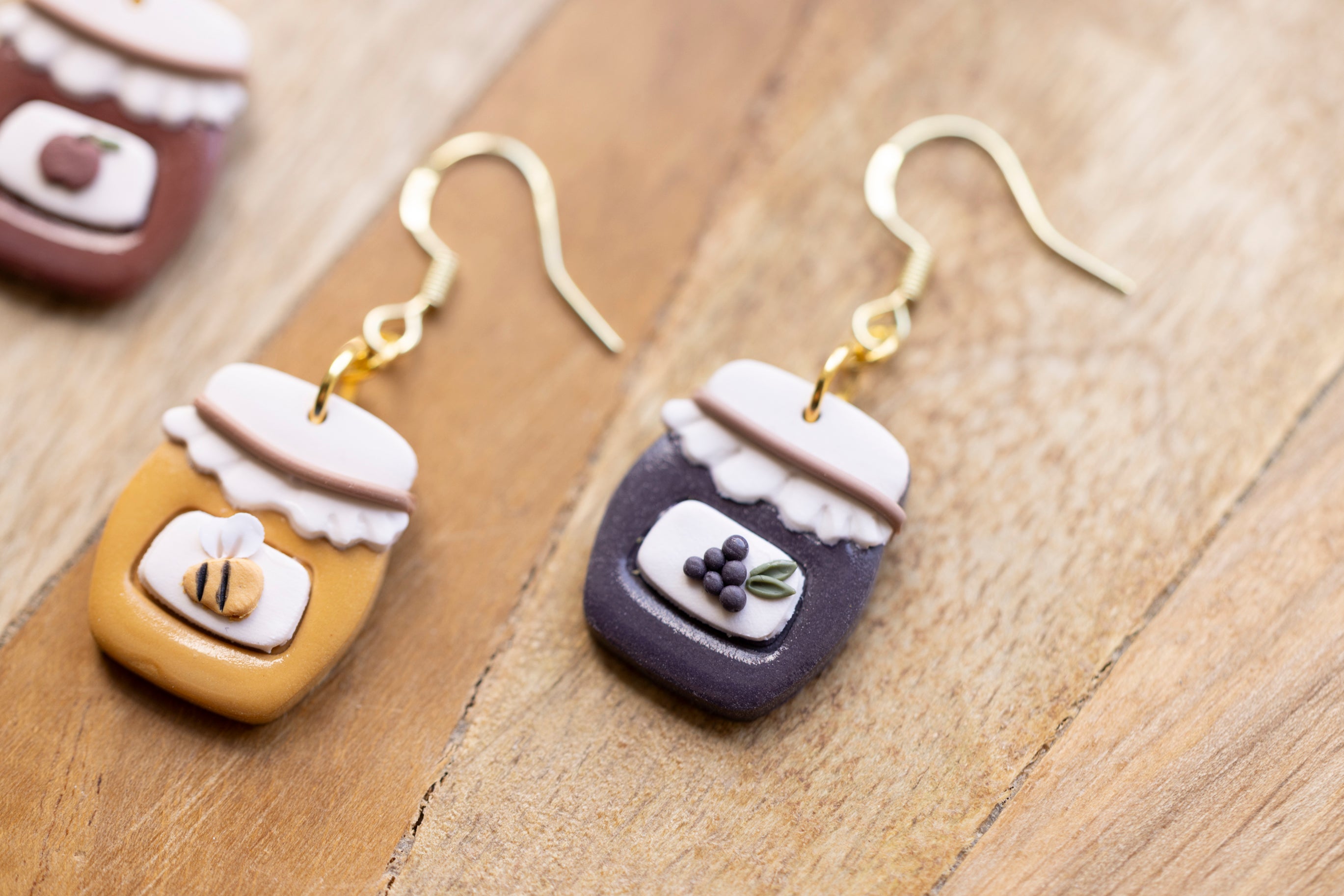 Bring a little country charm to your jewelry box with our Farmhouse Flavors collection — a sweet lineup of handcrafted polymer clay earrings inspired by your favorite pantry staples. Featuring five cozy "flavors" — apple butter, honey, grape jam, strawberry jam, and blueberry jam — each earring is sculpted with care to look like a mini mason jar, complete with a ruffled lid and a tiny fruit label.