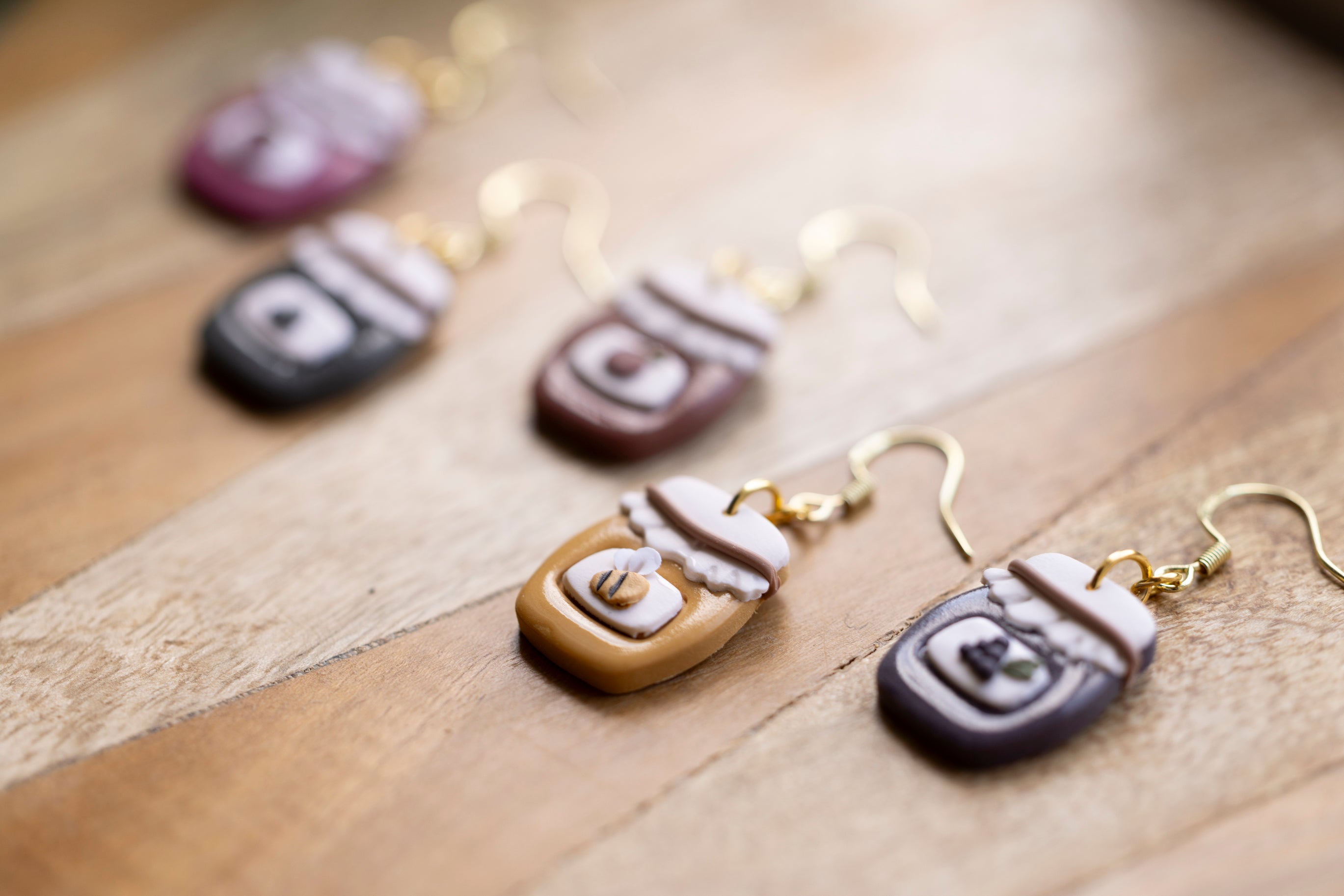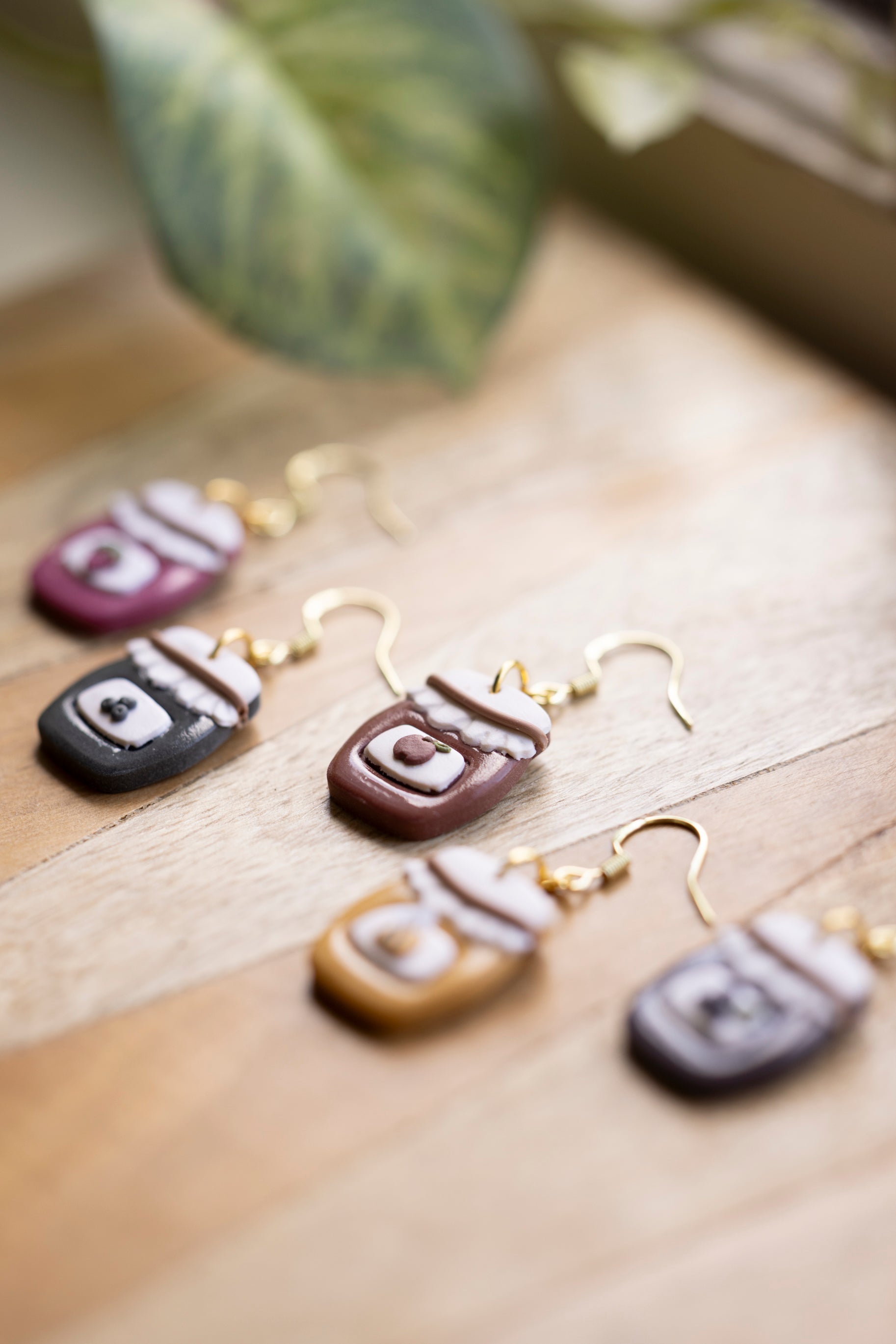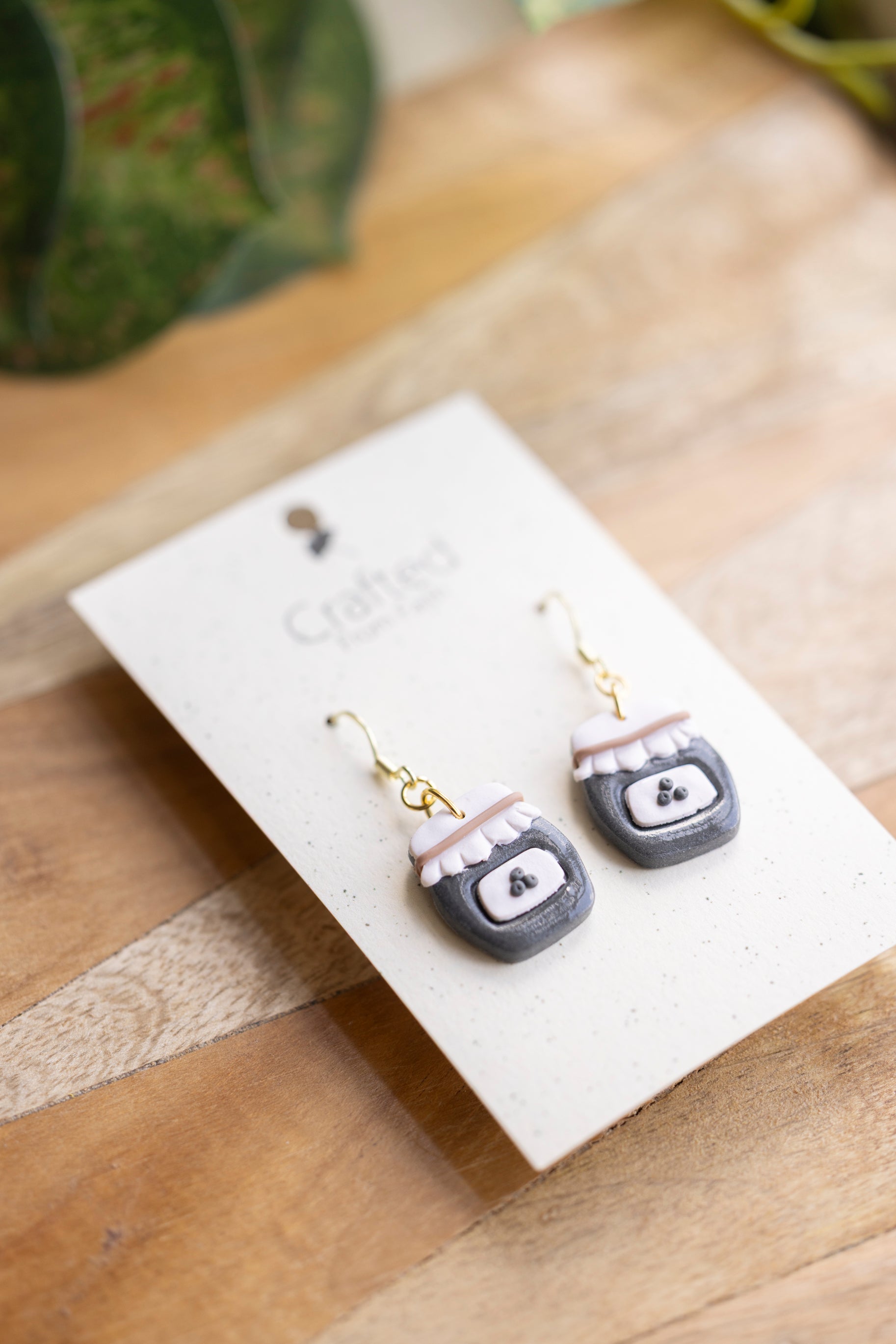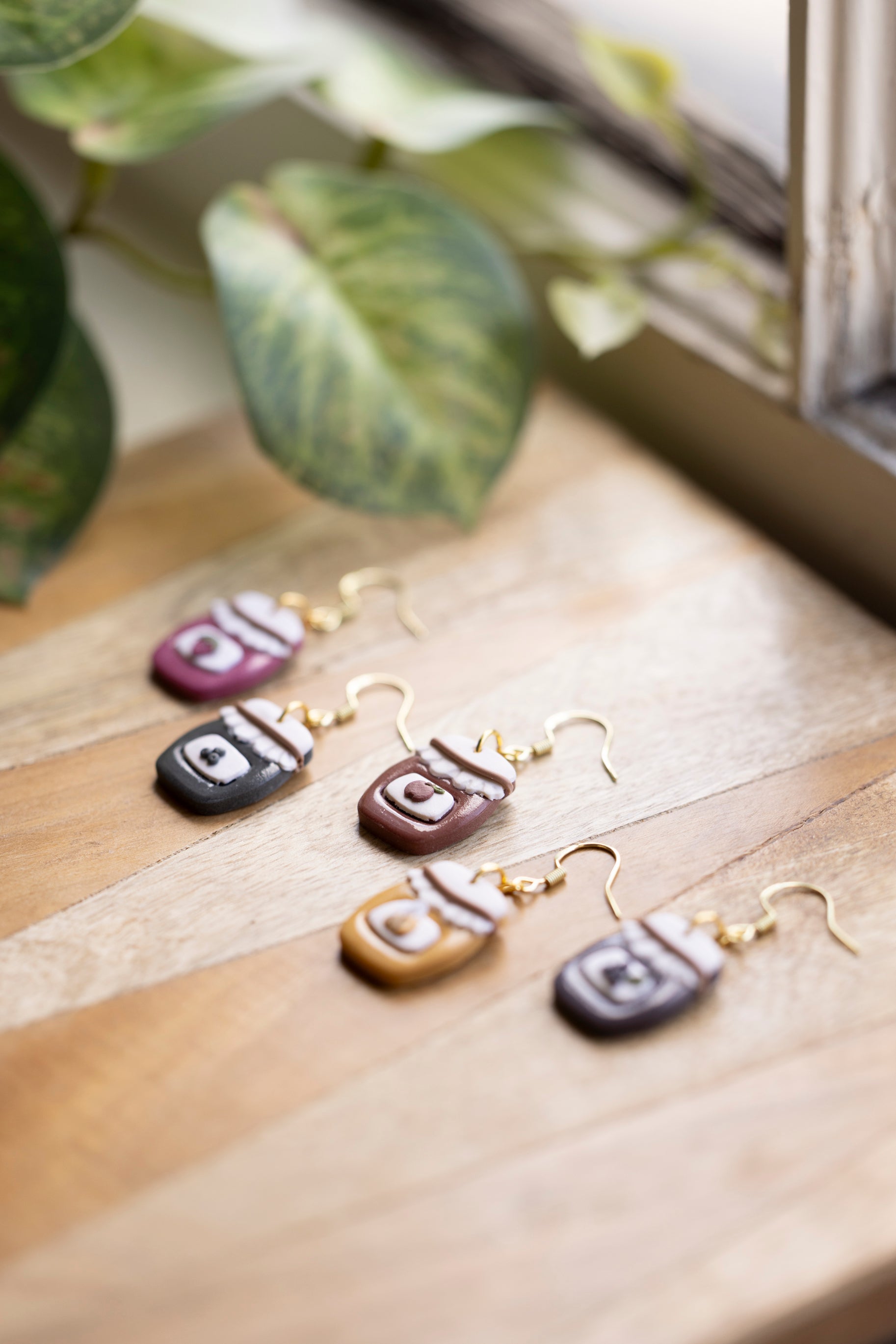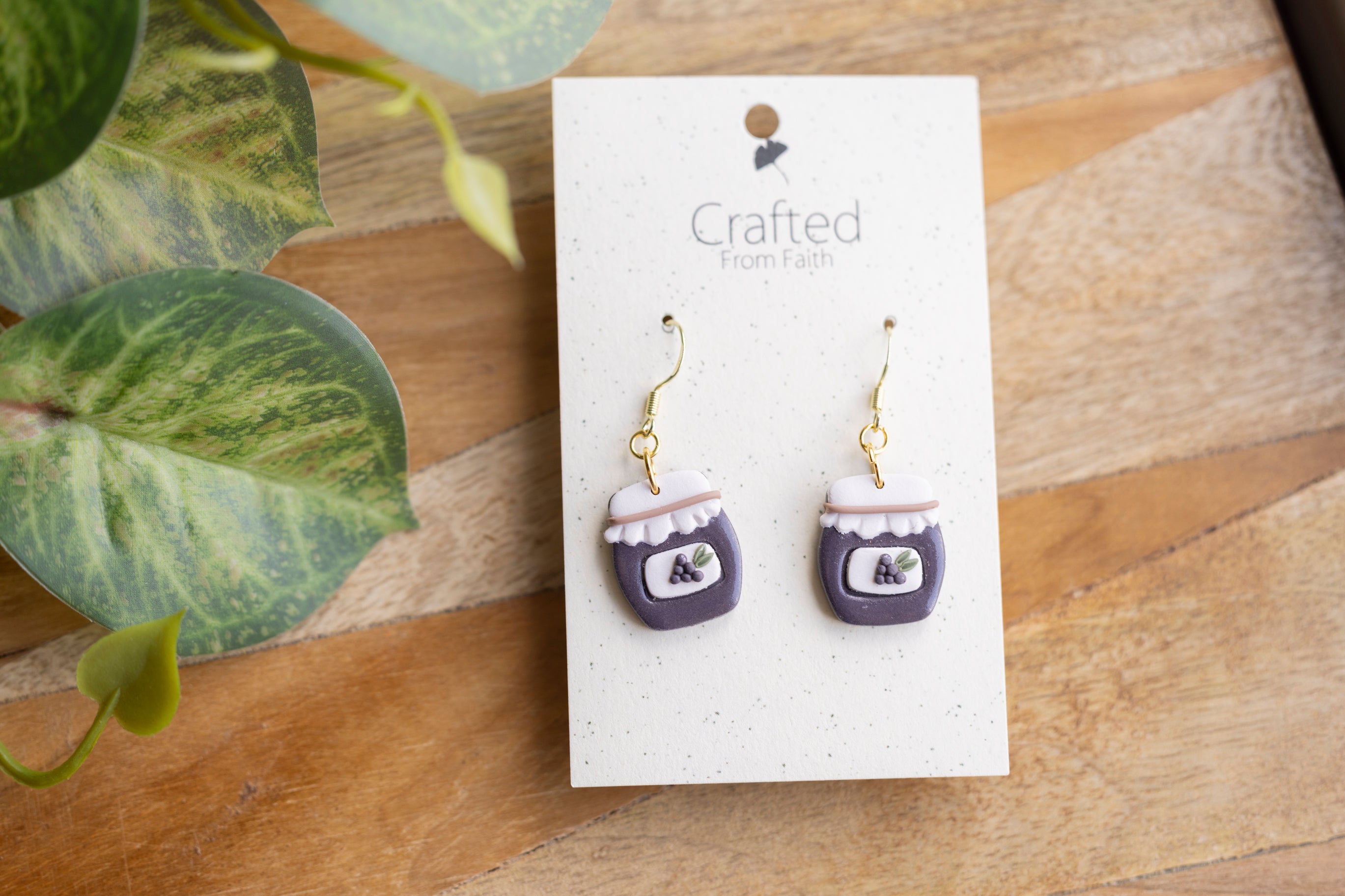Bring a little country charm to your jewelry box with our Farmhouse Flavors collection — a sweet lineup of handcrafted polymer clay earrings inspired by your favorite pantry staples. Featuring five cozy "flavors" — apple butter, honey, grape jam, strawberry jam, and blueberry jam — each earring is sculpted with care to look like a mini mason jar, complete with a ruffled lid and a tiny fruit label.
