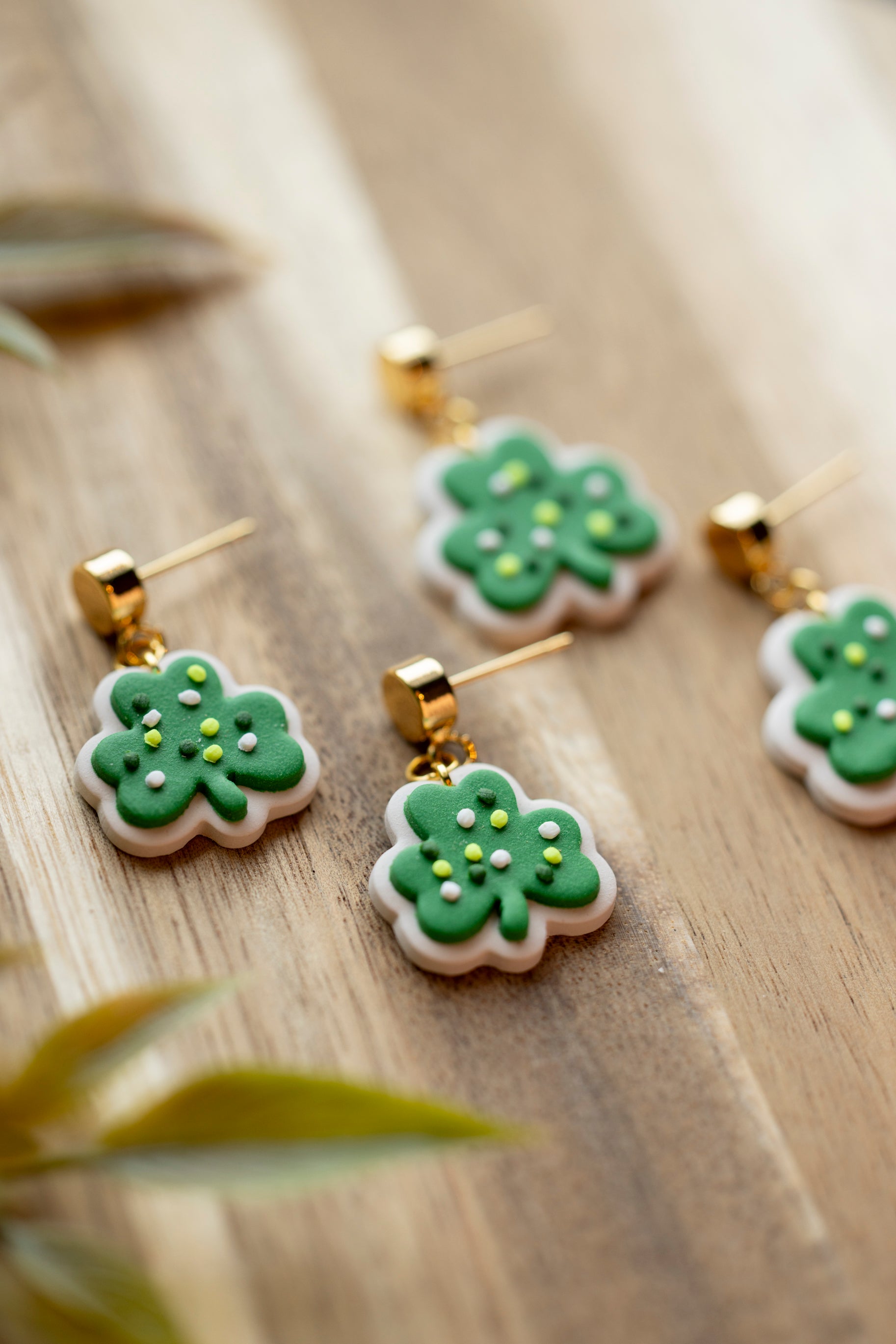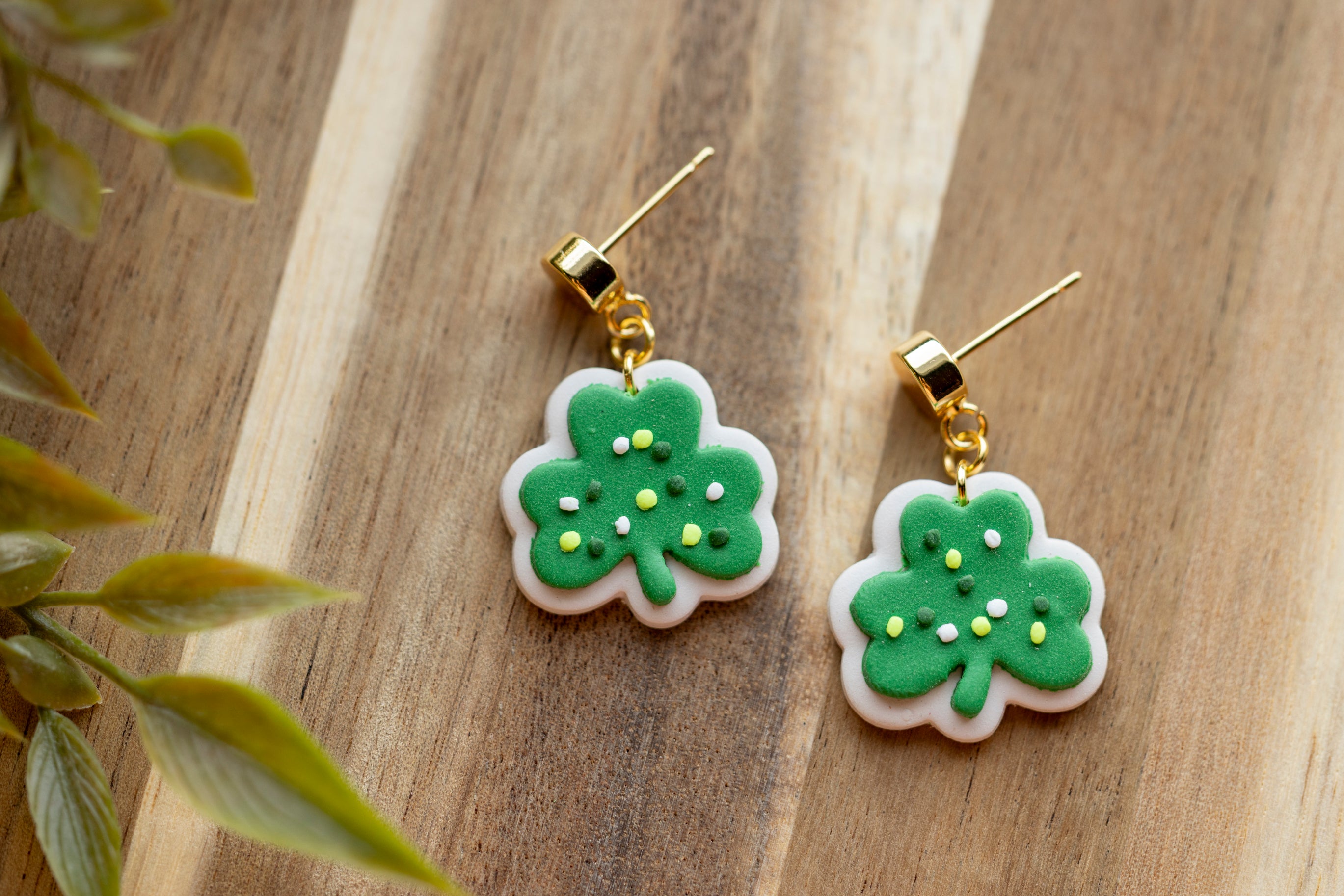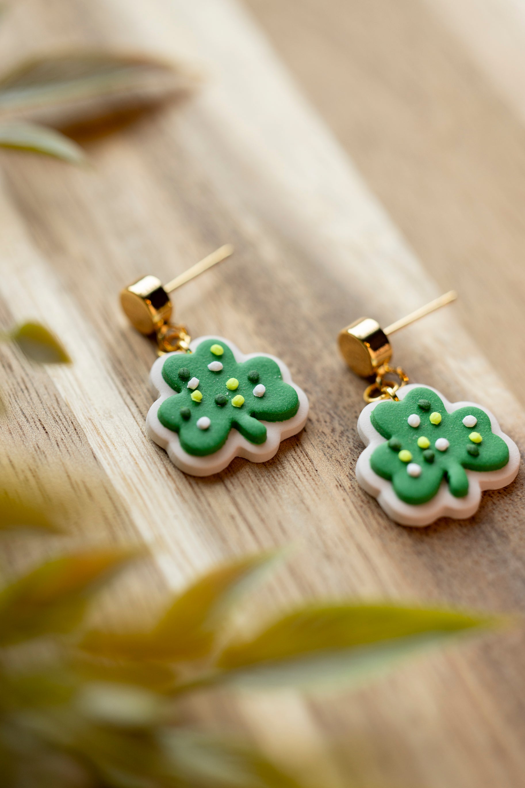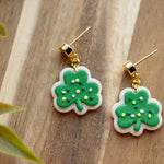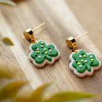 Sweet with a sprinkle of luck, Lucky Clover Cookies feature an adorable shamrock design that looks good enough to eat. Handcrafted from lightweight polymer clay, these playful earrings are finished with tiny sprinkle details for extra charm. Available in two sizes, they’re perfect whether you want a subtle pop of green or a bold festive statement.