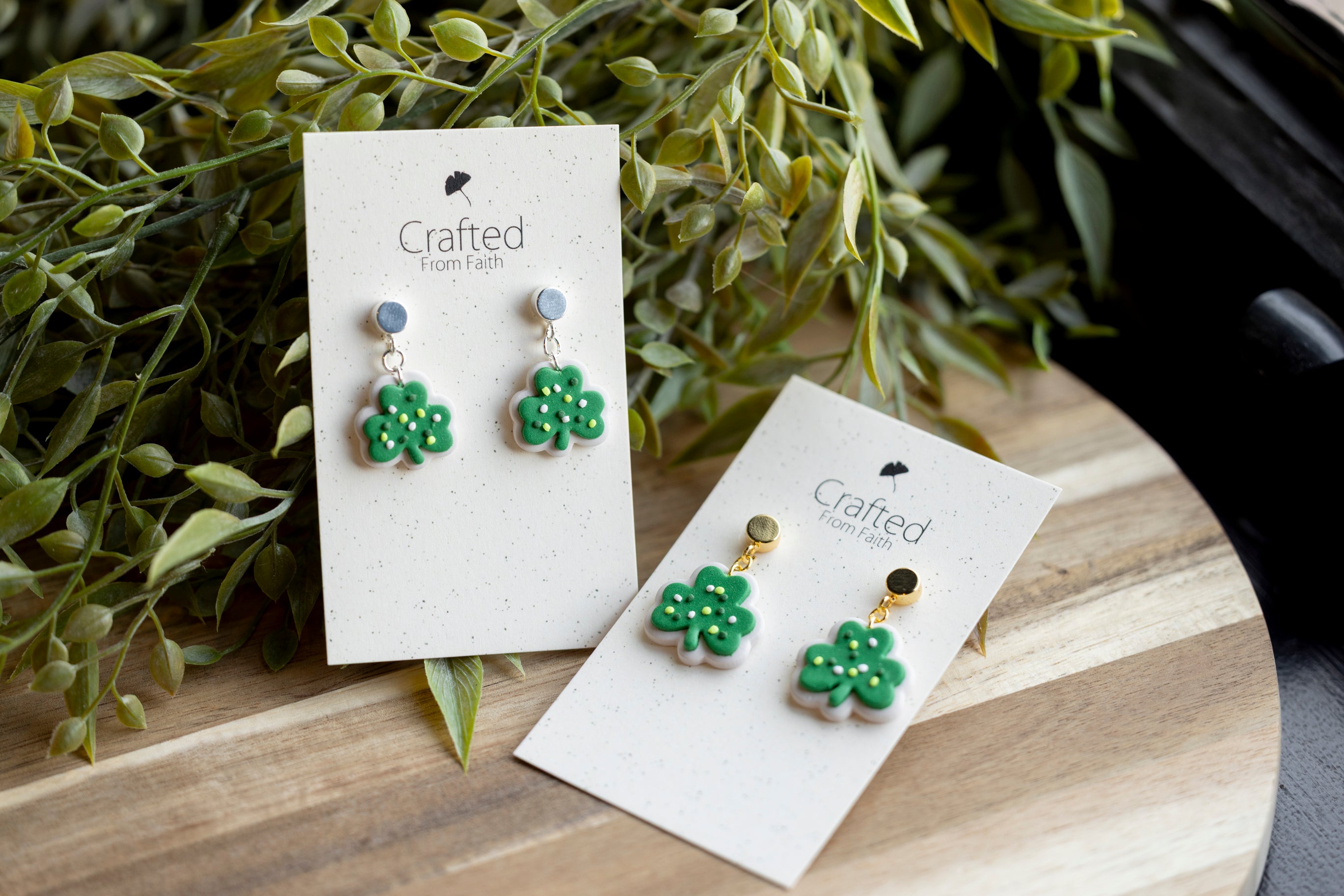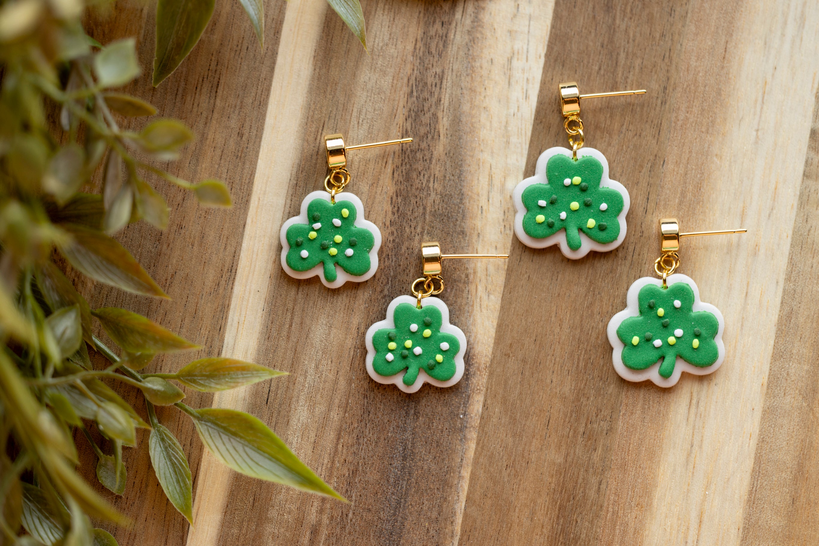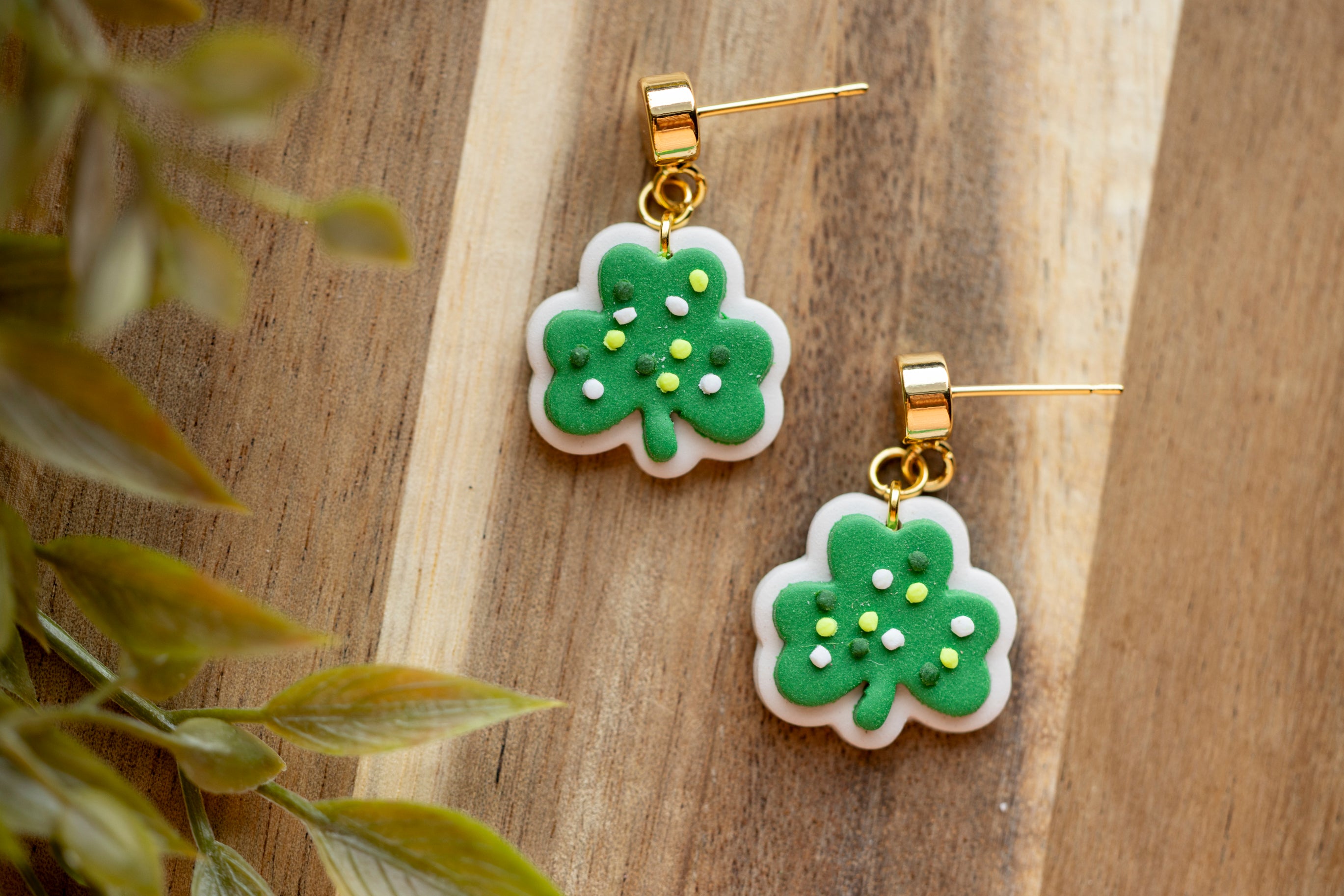 Sweet with a sprinkle of luck, Lucky Clover Cookies feature an adorable shamrock design that looks good enough to eat. Handcrafted from lightweight polymer clay, these playful earrings are finished with tiny sprinkle details for extra charm. Available in two sizes, they’re perfect whether you want a subtle pop of green or a bold festive statement.