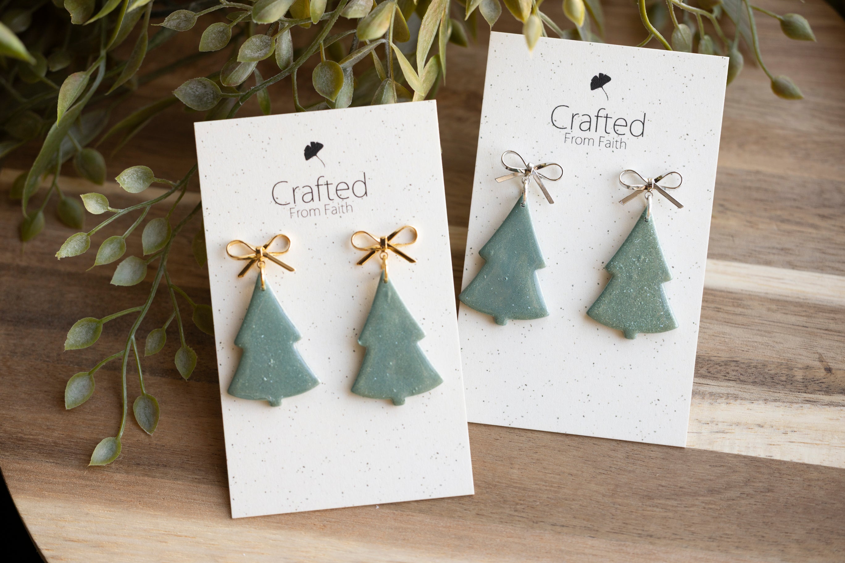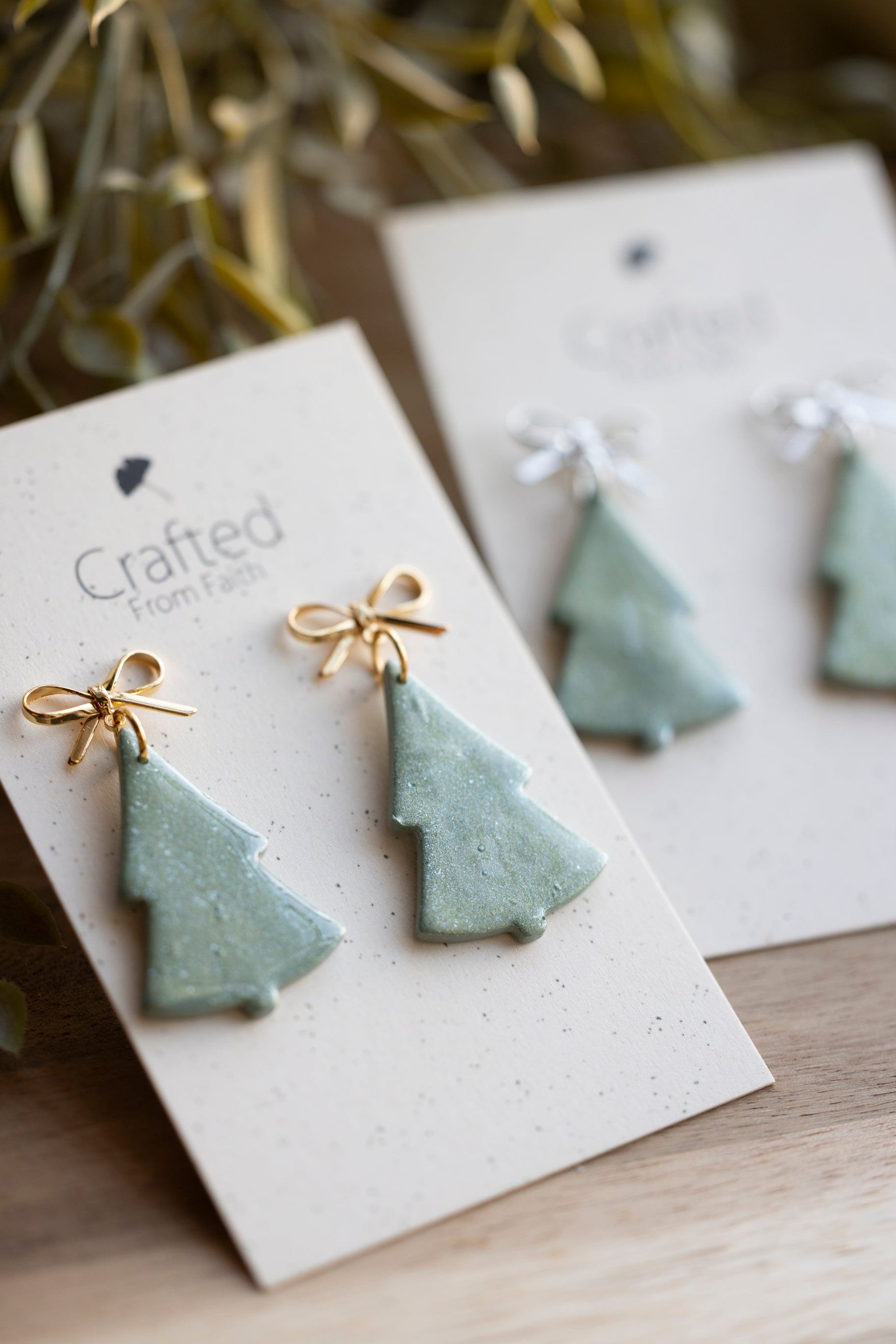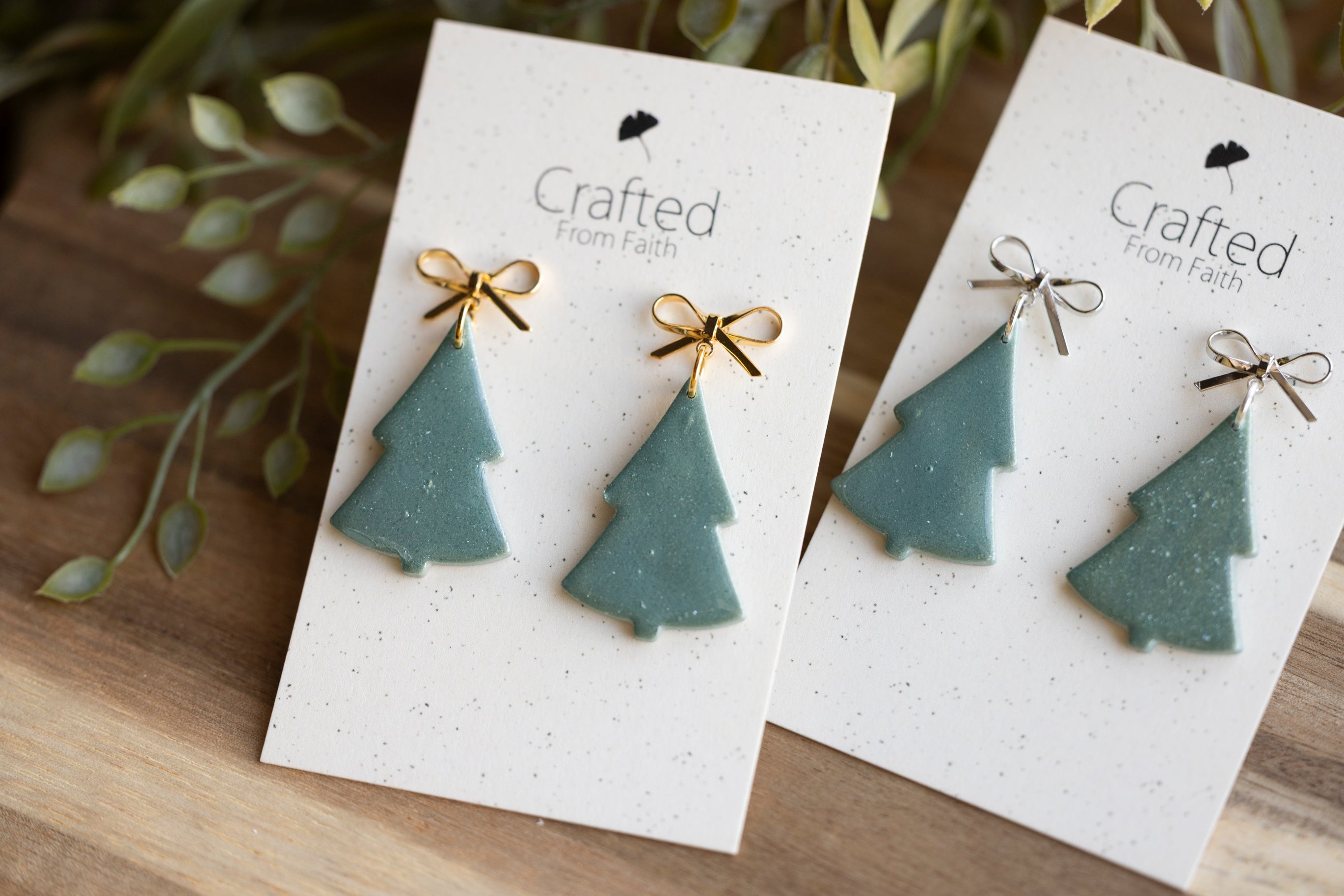 Add a little extra shine to your holiday look with our Sparkle Tree Earrings. These lightweight, festive trees are dusted in shimmering mica powder for just the right amount of sparkle without the weight. Perfect for parties, gatherings, or everyday seasonal cheer, they’re an easy way to make your outfit feel instantly merry and bright.